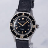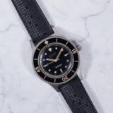 Notre avis : Une pièce de collection absolue : cette Blancpain Fifty Fathoms des années 50 représente le tout début de l’histoire des montres de plongée professionnelles. Cadran et lunette au radium, mouvement Rayville d’origine, boîtier intact, un ensemble au niveau concours, d’une rare pureté. C’est une icône intemporelle, comparable aux premières Submariner ou Seamaster 300, mais infiniment plus rare. Un graal pour collectionneur exigeant.