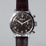Notre avis: La Type XX est une montre mythique qui a servi à l’armée française avec son mouvement si particulier avec son retour en vol « flyback » qui servait à calculer le lancement des bombes en aviation. Celle-ci est la version juste postérieur aux type XX militaire avec son remontoir plus moderne et sa lunette plus lisible. Le logo Breguet apparait désormais sur ce chrono en 2 compteurs des années 60 environ. Très rare pièce de collection chez Breguet qui en a produit peu et sont très recherchée des collectionneurs. Son prix en vente aux enchères fait de nouveaux records a presque chaque vente. Une vraie pièce en devenir.