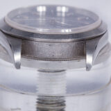 Boîte : Superbe boîtier en état strictement parfait, jamais poli (unpolished), avec des arêtes nettes et une carrure épaisse parfaitement conservée. Finition d’origine intacte, extrêmement rare pour une pièce de cette période. Le fond de boîte est encore équipé de son sticker vert d’origine « 14000 », confirmant l’absence totale de polissage.
