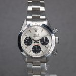 Notre avis: La Daytona 6265 est une montre d’exception avec sa lunette acier, poussoirs vissés et son cadran silver écriture rouge daytona BIG RED en parfait état et si recherchée. Le cadran est parfait avec une belle patine et tous ses points de tritium luminescents qui match avec ses aiguilles d’origine, la montre est peu polie, encore épaisse, poussoirs vissés striés deuxième génération…modèle extrêmement rare dans cette configuration. La vraie valeur investissement de chez Rolex. La Daytona reste le chrono de référence en horlogerie vintage, celle-ci est avec le cadran le plus recherché actuellement silver big red et surtout avec sa garantie d’origine mexicaine.