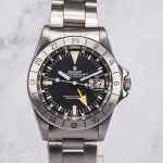 Notre avis: L’explorer II dit « Freccione » ou encore « Steeve Mc Queen » est une montre a part entière de la gamme rolex sport. Cette montre dédiée aux explorateurs a un cadran si unique avec des indexs carrés pour marquer les heures sur 24h et les indexs rectangles pour la lecture sur 12H. Ce système de lisibilité n’a jamais été utilisé sur un autre modèle par la marque. Son aiguille orange permettant la lecture 24H et aussi une vraie particularité de cette référence. Cette complication assez peu utile à une époque de montre outils en a fait un modèle peu produit car peu demandé et donc assez rare aujourd’hui comparé aux autres modèles sport de la gamme plus abordable pour le grand public. Celle-ci est en plus une des plus rare série MK2 avec une très belle patine et si recherchée bien vanille, son aiguille a aussi patinée vers un jaune vanille superbe.