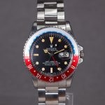 Notre avis: La GMT est devenue plus mythique que la Submariner récemment avec une très longue attente du retour de la lunette Pepsi. Celle-ci a sa sortie crée un effet de spéculation énorme sur toutes les GMT et les collectionneurs les apprécient encore plus que par le passé. Celle-ci est rare dans sa version référence 1675 MK1 long E avec sa lunette PEPSI et son bracelet acier plié d’époque. Modèle réédité par Rolex et qui a lancé la nouvelle spéculation de la GMT master PEPSI. Cadran mat avec une superbe patine et un insert qui matche si bien sur ces vintages. Une montre de collection si belle avec tant de caractère. La montre est peu polie, encore épaisse, modèle extrêmement rare dans cette configuration. La vraie valeur investissement de chez Rolex. De plus que les neuves se revendent encore plus chère que ces modèle rare et limitée en production. Alors dépêchez-vous avant qu’elles explosent en prix !