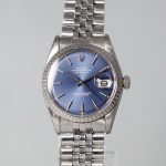 Our opinion: Une Rolex simple, intemporelle, lunette cannelée d’origine référence 1603, classique, increvable, indémodable, pouvant aussi bien convenir à un homme ou une femme et qui donne la date. Belle datejust vintage des années 70, mouvement automatique, verre plexi, couronne et fond de boite visés. Cadran bleu rare ref 160 » montée sur une lunette en acier. Une belle montre vintage moins cher que les modernes en verre saphir !! Livrée avec son bracelet jubilé plié d’origine