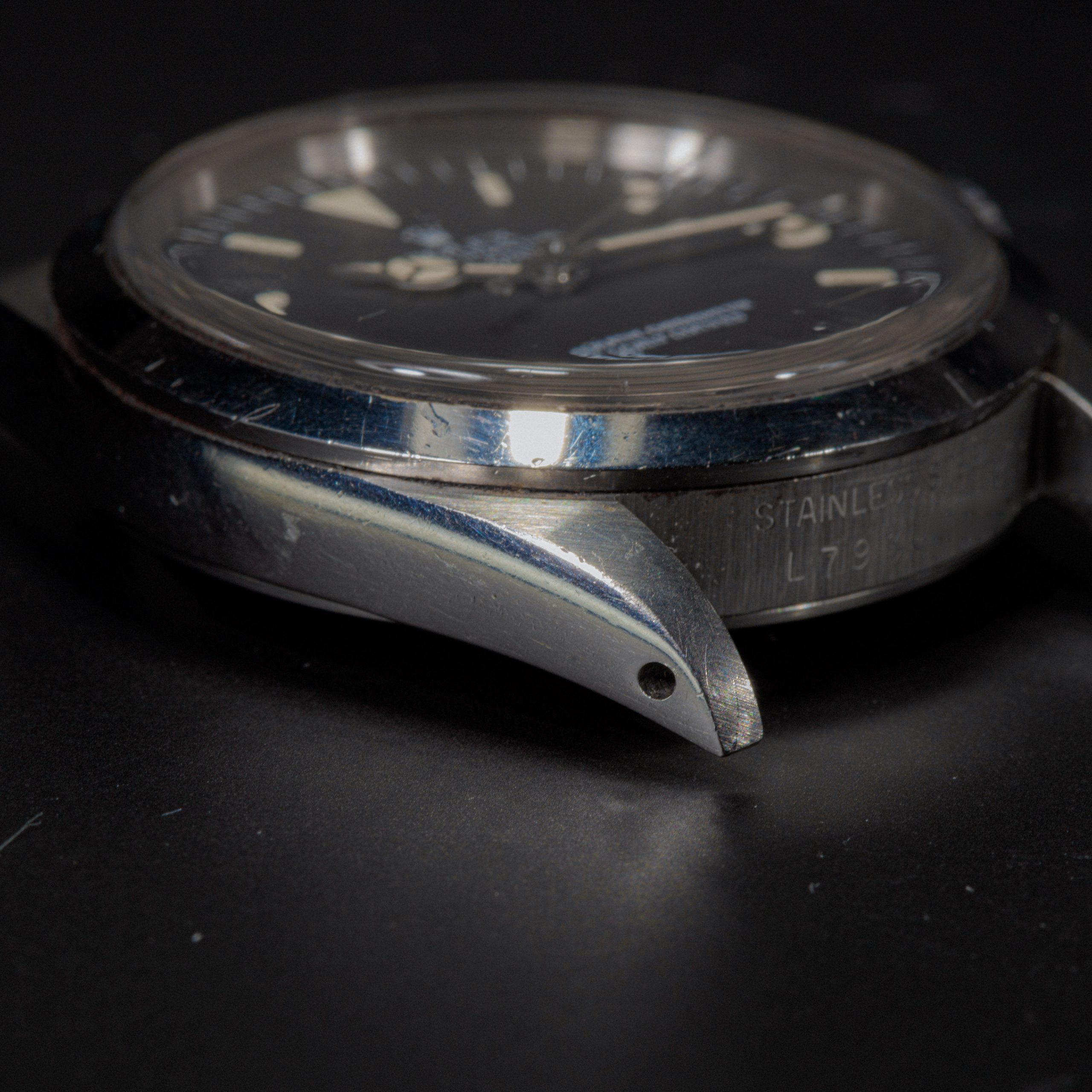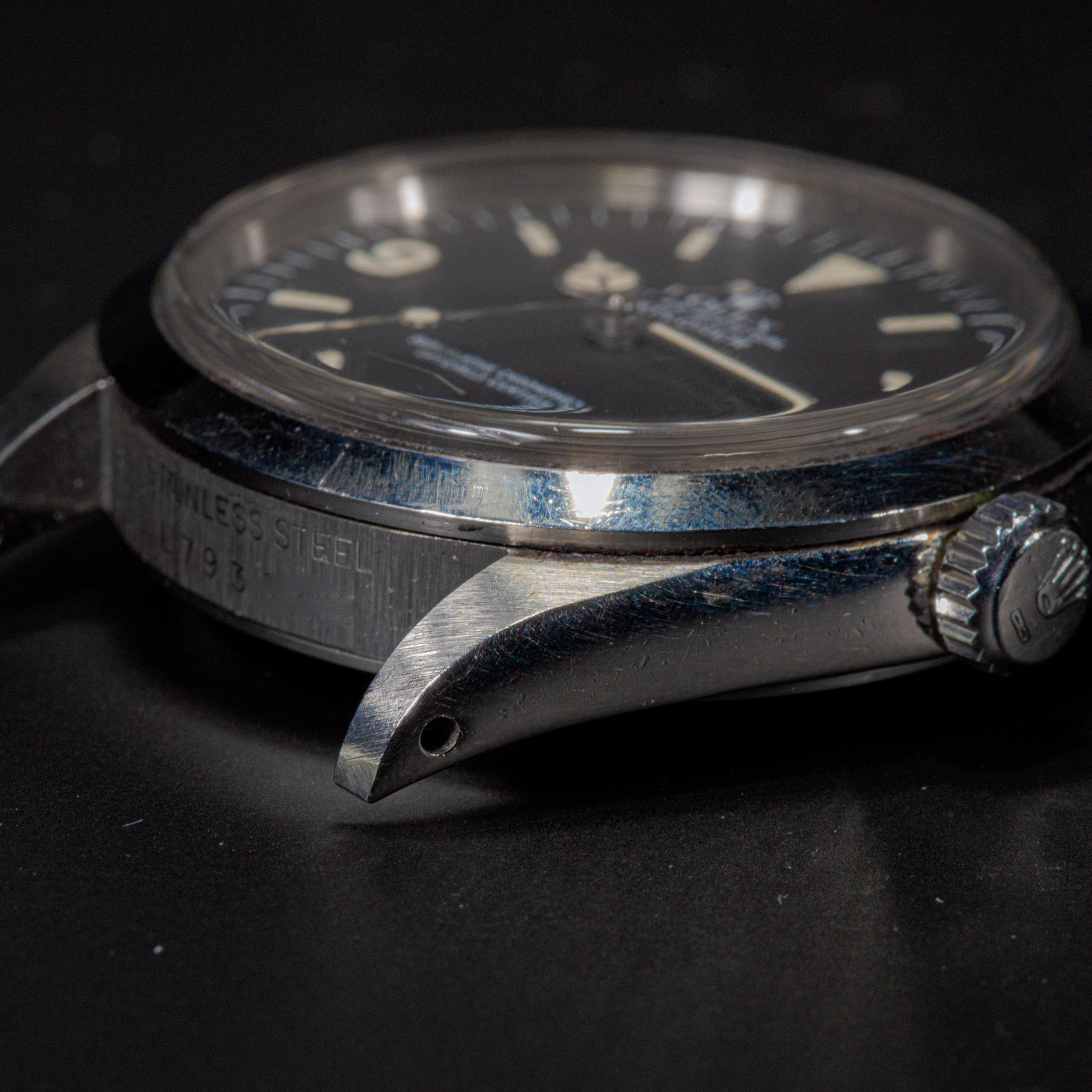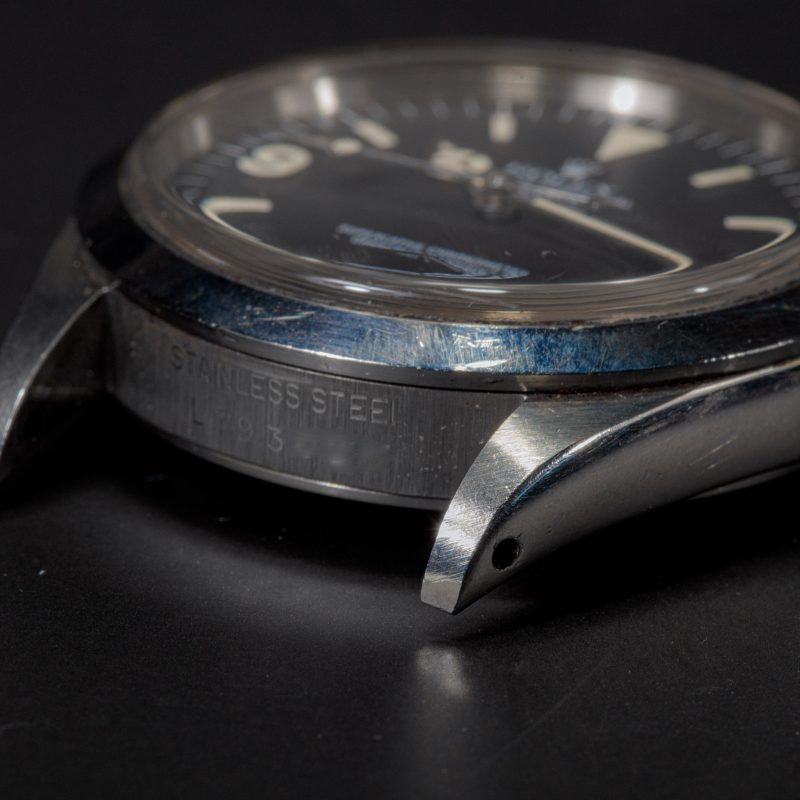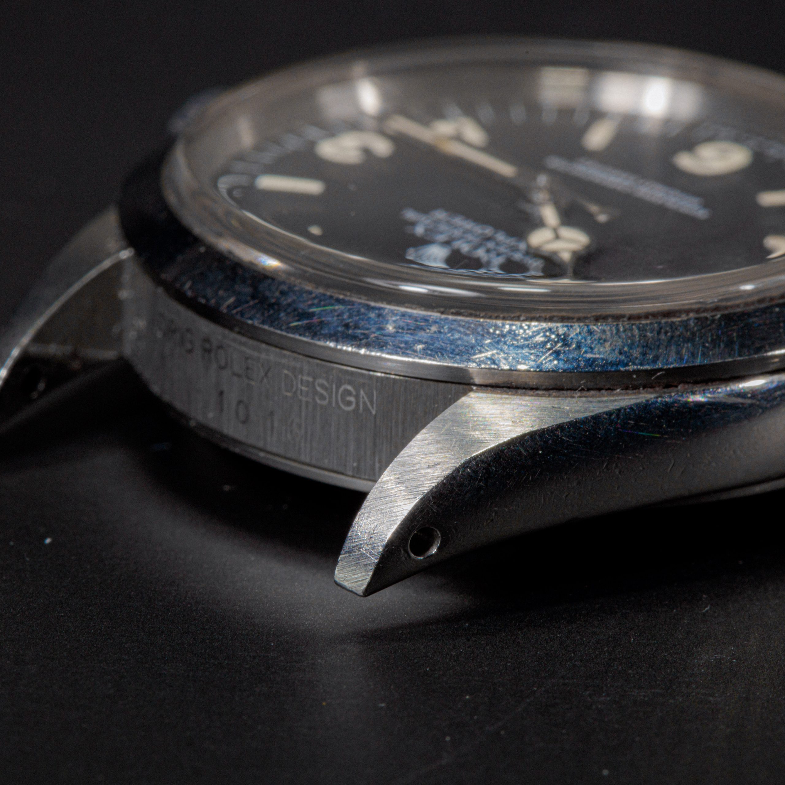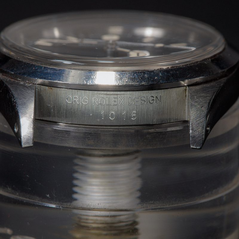Case: Très beau boitier à peine polie, encore très épais et avec des angles parfaits car le boitier de la 1016 était assez fin pour une montre professionnelle. Lunette en état parfait. Pas de chocs visibles importants.
