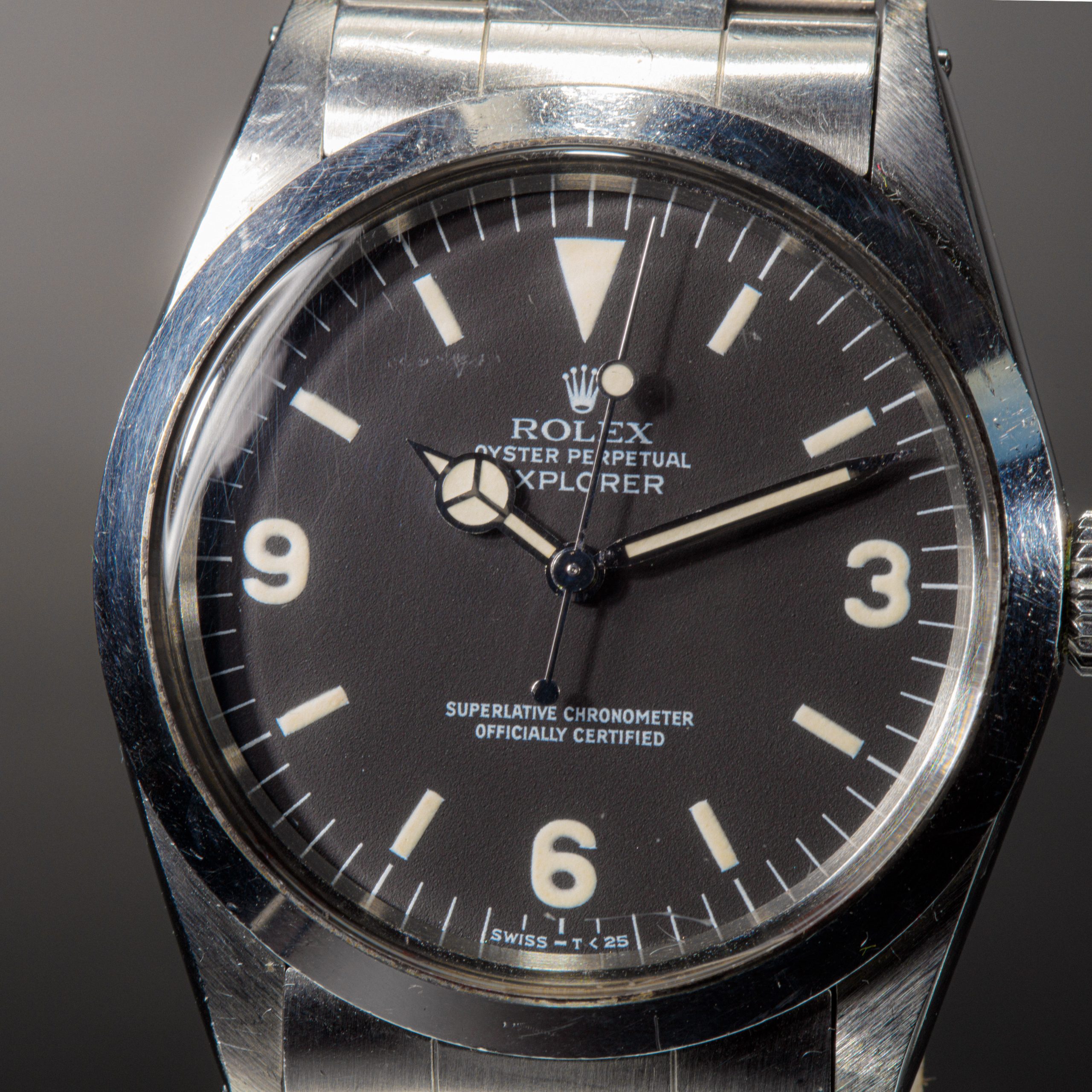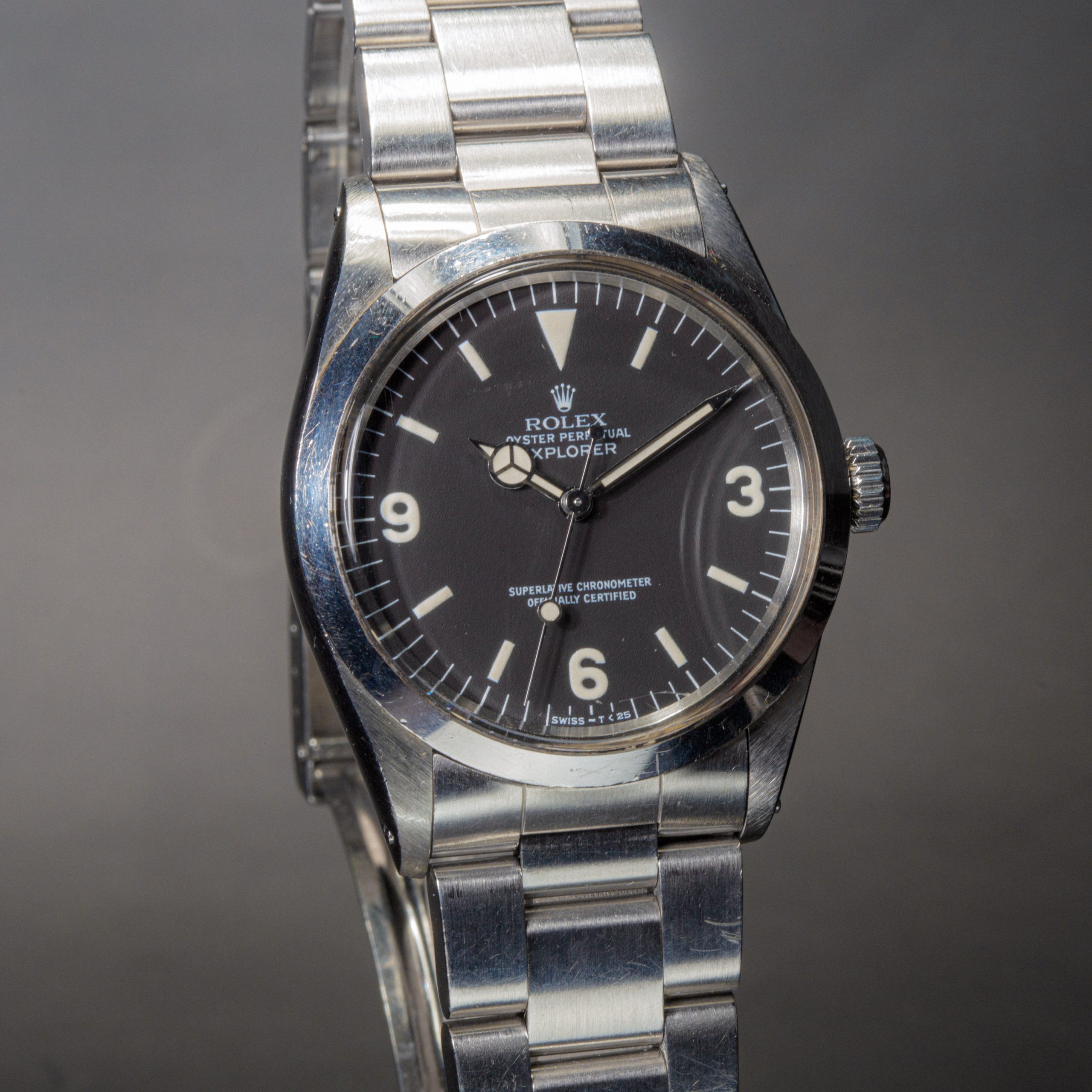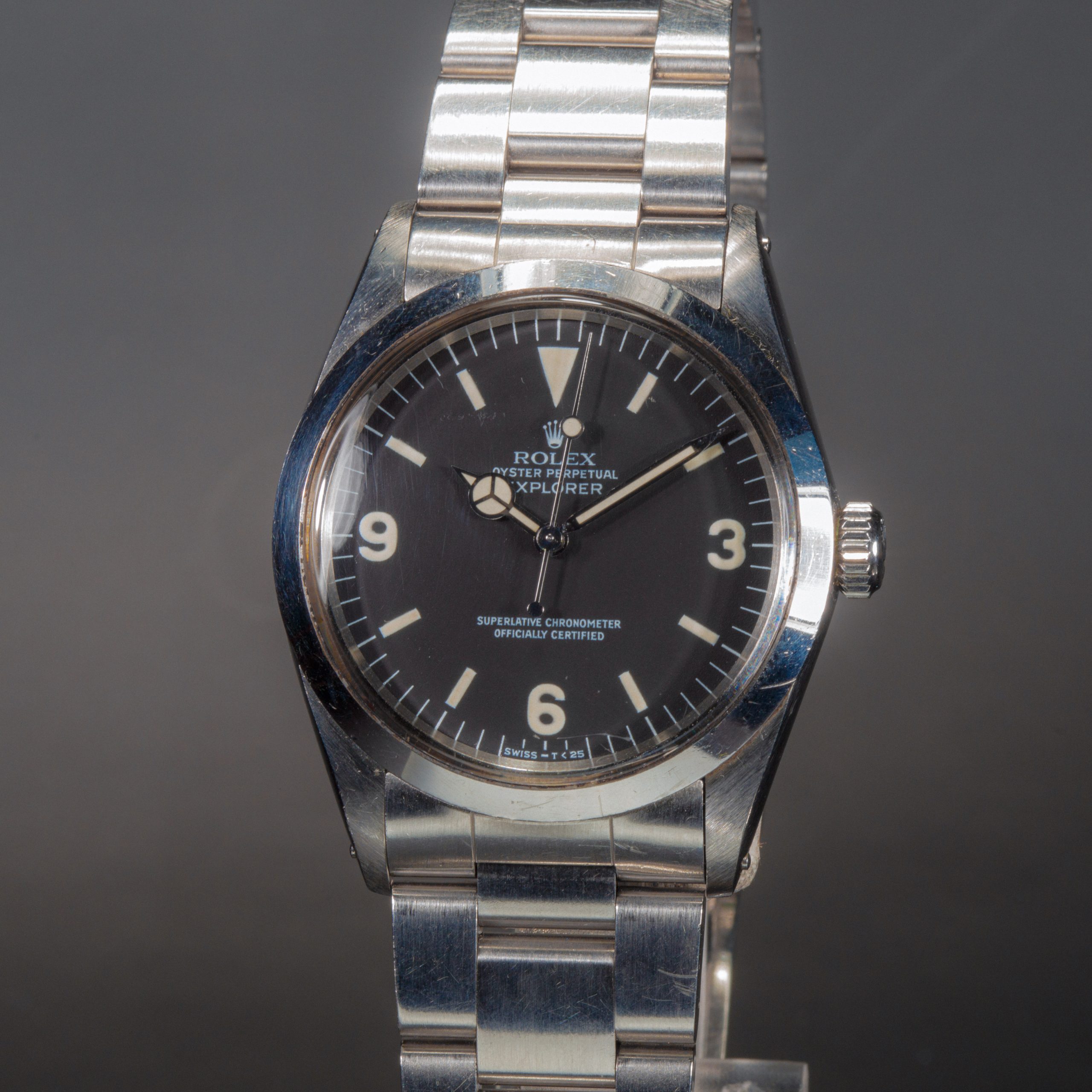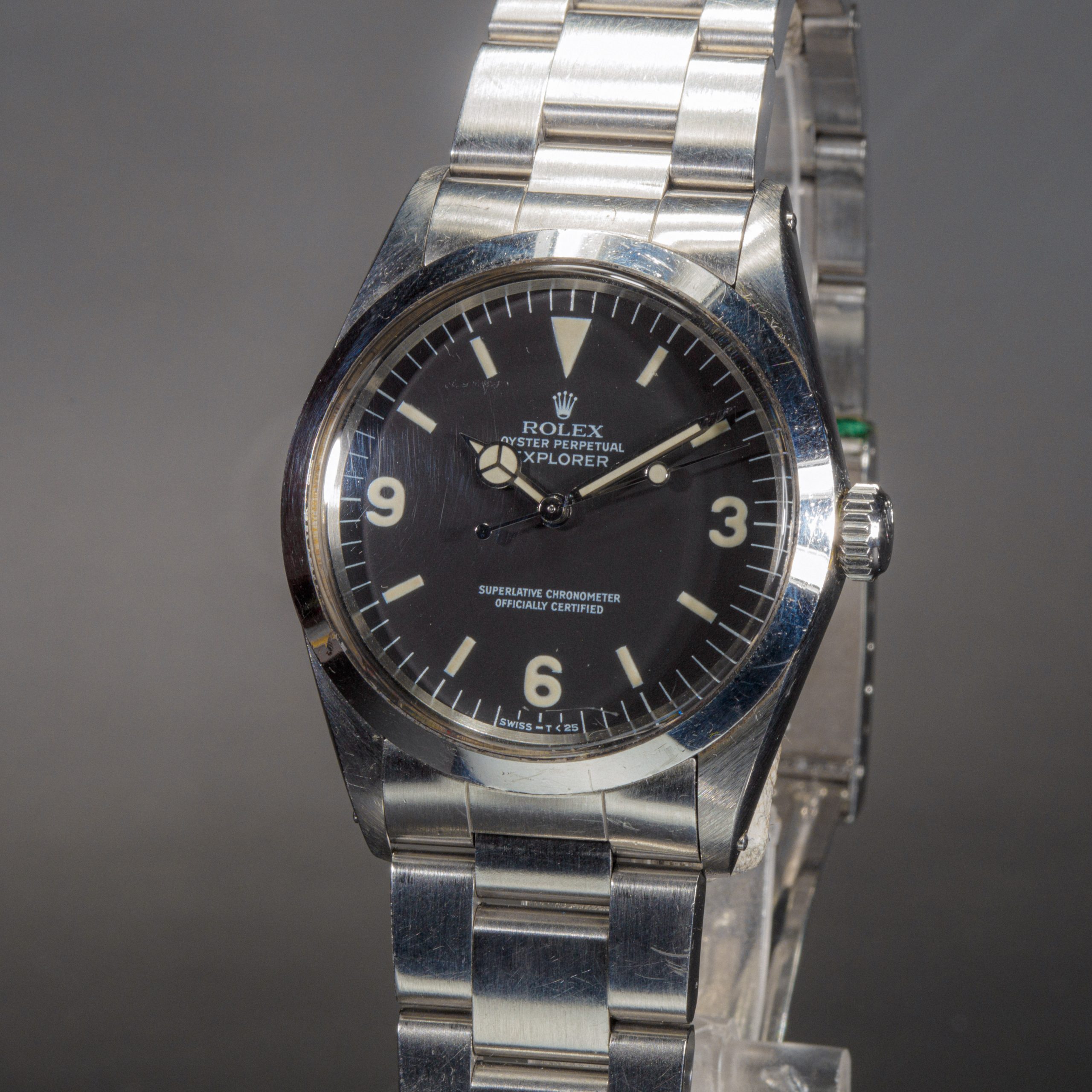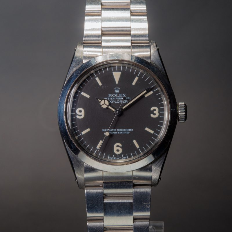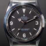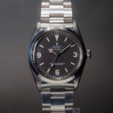 Our opinion: L’explorer réf 1016 est apparue dans les années 60, différentes versions ont été produites, mat, laqué, cadran blanc… Une vraie référence collector si difficile à trouver aujourd’hui. Celle-ci a une belle patine. Le boitier est en parfait état, son cadran mat dernière génération est tout aussi parfait matchant bien les aiguilles ! La montre est dans son état d’origine avec son bracelet blindé et fait partie de la toute dernière série produite en 1989 quand le plexi avait disparu de la collection Rolex, très recherchée !!!! Si rare à trouver aujourd’hui qu’elles valent maintenant plus chère que les Submariner !
