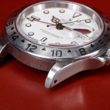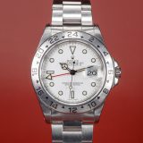 Our opinion: L’explorer II POLAR dial est une montre a part entière de la gamme rolex sport. De plus, cette montre dédiée aux explorateurs possède système de lisibilité qui n’a jamais été utilisé sur un autre modèle par la marque. Son aiguille rouge permettant la lecture 24H est aussi une vraie particularité de cette référence. Cette complication assez peu utile à une époque de montre outils. Celle-ci est en une des plus recherchée avec son. cadran blanc dit POLAR. Montre livrée en full set boite, papiers d’origines et révision Rolex.