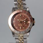 Our opinion: The GMT has become more legendary than the Submariner recently with a very long wait for the return of the Pepsi bezel. When it was released, it created a huge speculation effect on all GMTs and collectors appreciated them even more than in the past. This is rare in its gold steel version reference 1675/3 with a rare gold and steel jubilee bracelet and in good condition. Root beer nipple brown matte dial with a beautiful patina and an insert that matches this patina so well with a reminder of the orange of the brown dial. Such a beautiful collector's watch with so much character. The watch is unpolished, still thick, an extremely rare model in this configuration. The true investment value of Rolex.