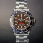 Our opinion: A sublime example of the vintage Submariner date reference 1680, the Rolex Submariner with date and red writing on the meter first TROPICAL dial. A must-have in a Rolex collection, produced until 1975, this watch is part of the first meter first mark 2 series, serial number 22XXXXX which had the particularity of turning brown, tropical perfect. The watch is in perfect condition, its original mk2 dial has a superb vanilla-yellow patina with the red clearly visible on white, thus thicker to the eye, and its matte black has become tropical perfect! A rare watch in this condition, as almost all of them were diving at the time. A beautiful collector's item in almost new condition, with its original folded oyster bracelet and brown dial. A must-have for any fine collection, as so few full sets have survived to the present day.